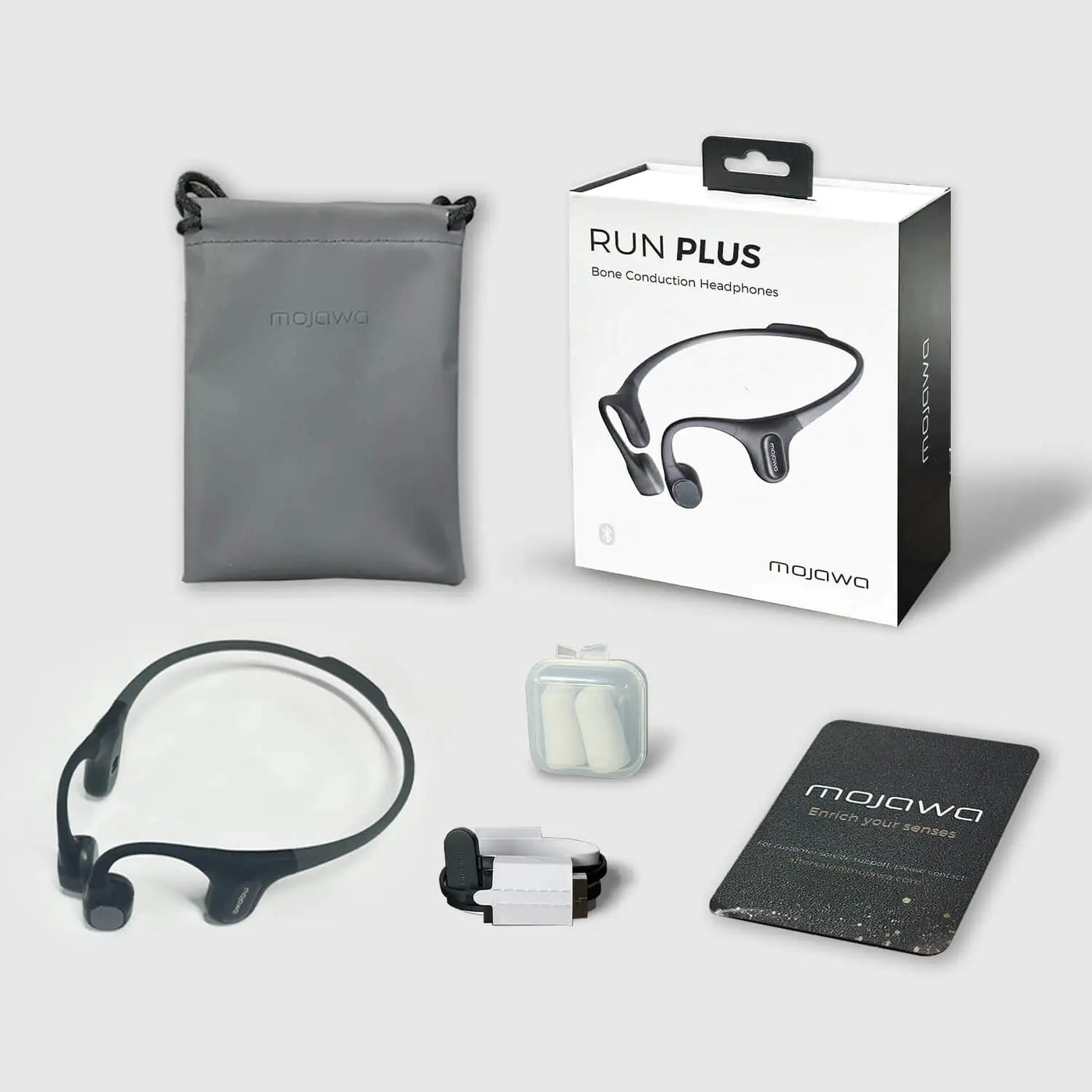 אוזניות אלחוטיות בטכנולוגיית הולכת עצם לספורט ושחייה בצבע כחול Run Plus מבית MOJAWA